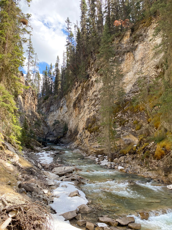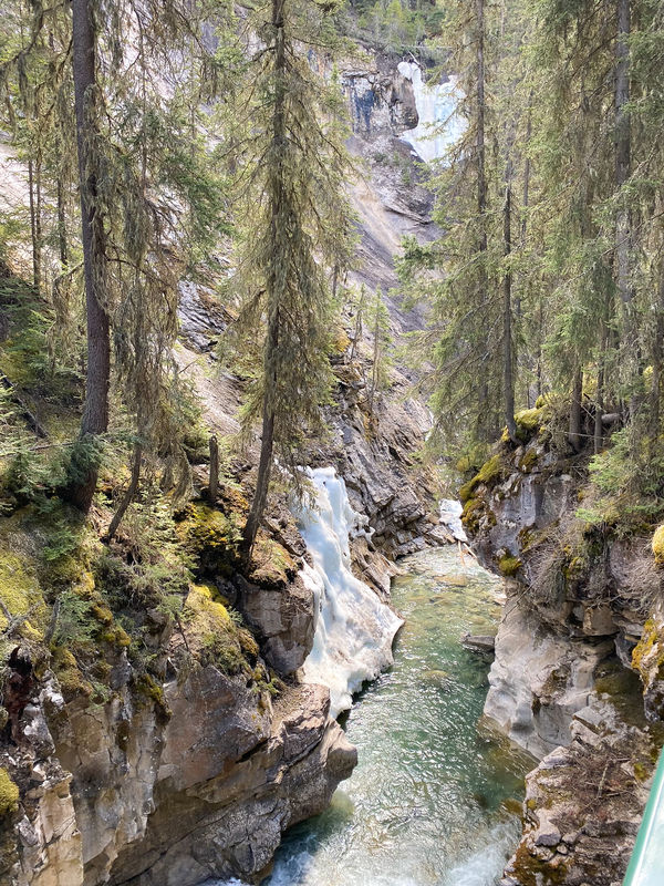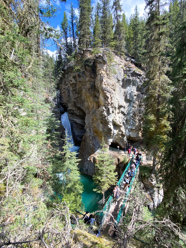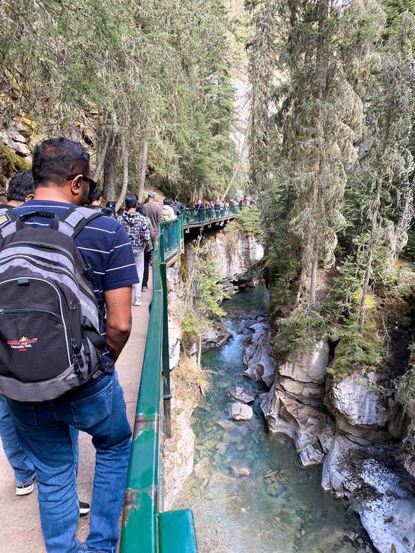 We rented e-bikes at Banff Cycles for $99 per person for the day. The helpful owners suggested we pedal north to Johnston Canyon. Since we wouldn’t be dealing with parking, we decided it’s probably worth seeing one of the most suggested sights in Banff National Park.