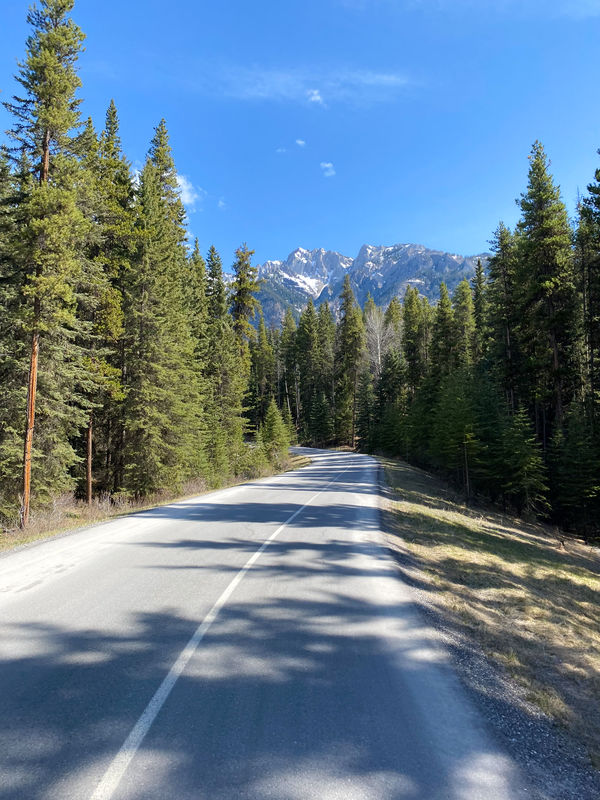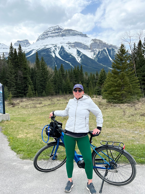 When we were there, Highway 1A was closed to cars, allowing bikers (and e-bikers) free rein to cruise up and down the old highway that runs alongside Bow Valley Scenic Parkway. This is another great perk for visiting during the off-season. The road is open to car traffic throughout July and August, making biking a bit more dangerous.