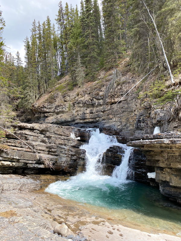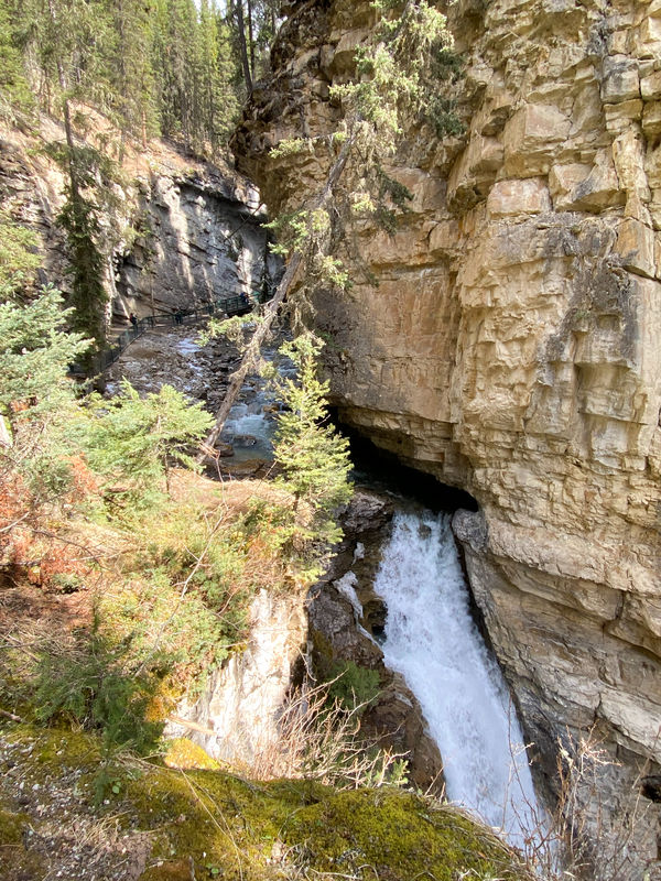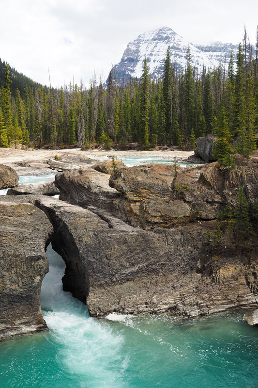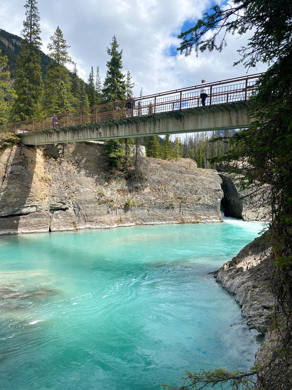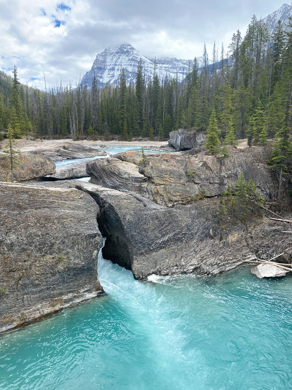 After taking all the train pics possible, we continued on and stopped at the Natural Bridge over Kicking Horse River. Again, absolutely stunning. While I love an ass-kicking, multi-mile, thousands-of-feet-elevation-gain hike, I also love a roadside pitstop that makes me want to sit and stare forever. That’s this place. Stop here and marvel.
