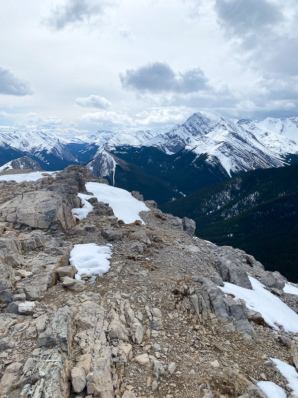 I want to go back to Jasper National Park to crush this hike in good weather because the day we did it was pretty mis-er-uh-ble. The trail was 95% covered in snow, so we walked slow and steady. The final 400 meters are a steep climb to the top, which pretty much sucked. BUT IT WAS SO WORTH IT. The views are amazing. Exclamation point! Don’t tell the other Sulphur trail, but this one is my favorite. It was just so windy and cold at the summit that we stayed only long enough to eat a snack and then hustled (slowly, very slowly over the ice and snow) back down.
